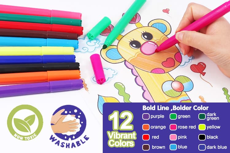 Foska 12 colors Water color pen--non-toxic, environmental, eco-friendly, safe for children, vivid color while drawing.