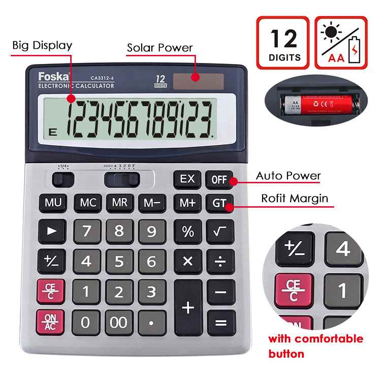 Support +/-(negative),%,√ calculation; Rounding off & decimal place setting; CE/C (part/all clear), MC/MR/M+/M- (memory) key.
