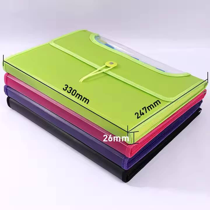 Foska13 Pockets A4 Size Plastic Transparent Assorted Color Expanding File Bag
