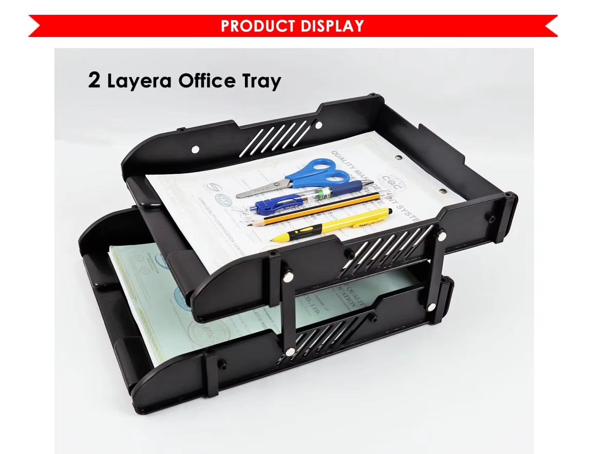 This elegantly designed 2-layer office tray is an essential desktop organizer for any modern workspace. The tiered structure provides efficient vertical storage, keeping your documents, files, and office supplies neatly organized and within easy reach. The upper layer can hold smaller items like notepads, pens, or business cards, while the lower layer offers ample space for larger documents or folders. Made from high-quality materials, this versatile tray helps maintain a clutter-free and productive work environment.