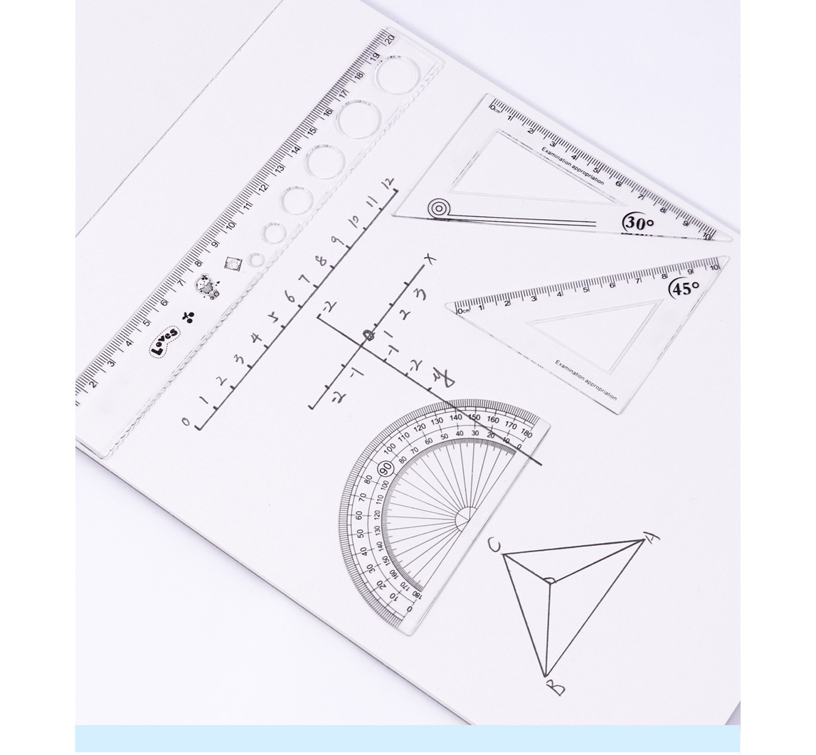 Foska Portable and Durable Clear Mathematics Ruler Set- Crafted from high-quality ABS plastic, each ruler in this set exudes top-notch durability, ensuring it withstands the test of time. The translucent nature of these rulers allows for effortless visibility, giving you a crystal-clear view of your measurements and designs.