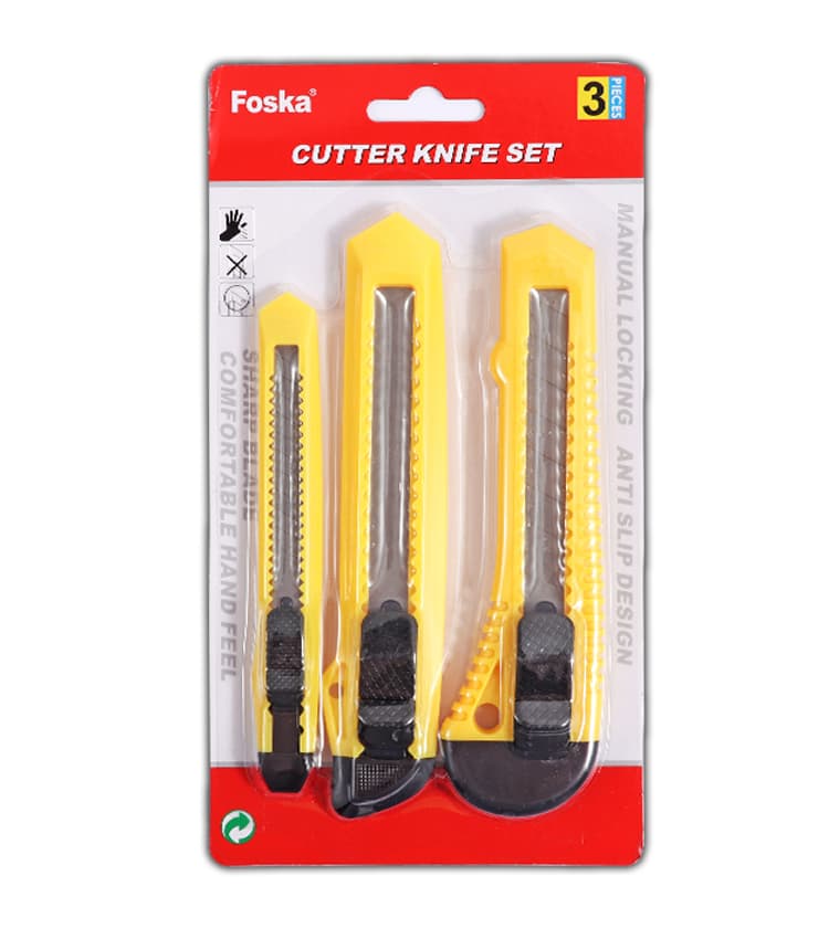 Foska Standard Multi-tool Soft Grip Utility Cutter Knife Set For Daily Cutting-Featuring a sleek design and a soft grip handle, these knives offer utmost comfort and control, allowing you to navigate through even the most intricate of cutting tasks with ease. The blade thickness of 0.40mm and 0.38mm ensures effortless precision and efficiency, whether you're cutting paper, cardboard, or any other material.