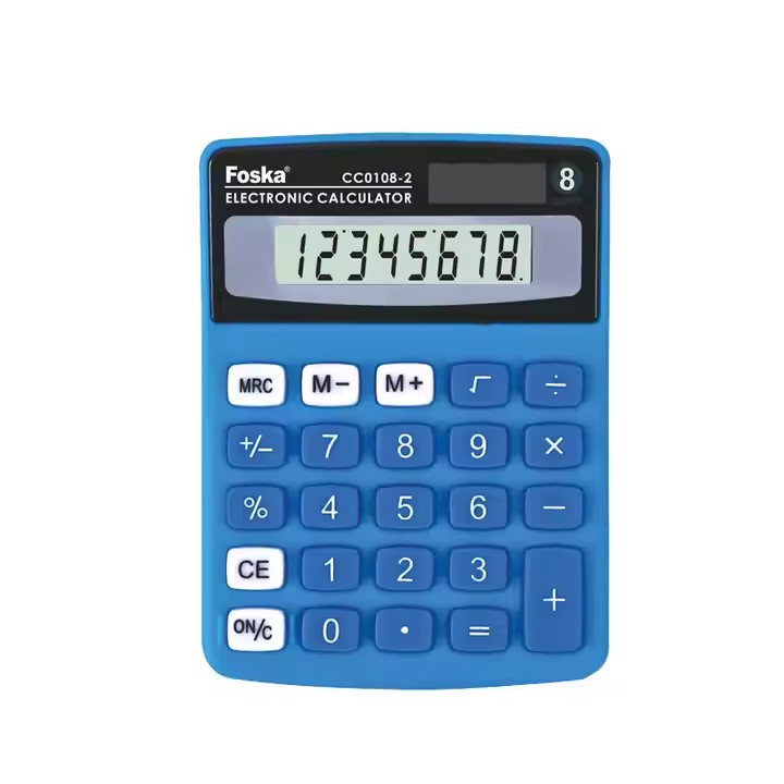 This is an 8-digit calculator, designed to handle a wide range of mathematical operations with precision and ease. It features an easy-to-read 8-digit display screen that can show numbers from 0 to 99,999,999. Its compact size makes it portable and convenient for everyday use in office, school or home. The reliable design ensures accurate results for both simple and complex calculations within the 8-digit range.