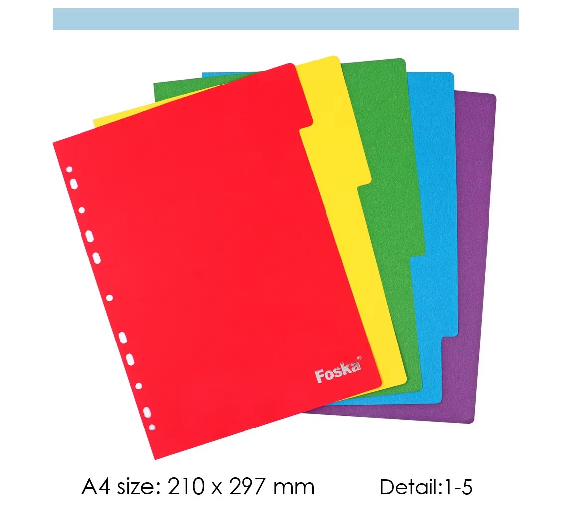 A4 5 colors paper index divider, thickness of paper is 180GSM, ideal for office file organization.