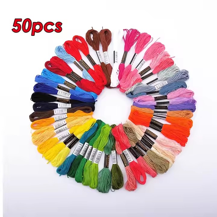 Embroidery floss is a type of thread specifically designed for embroidery work. It is composed of multiple strands of fiber that are twisted together, usually made from cotton. Cotton embroidery floss is the most common and popular choice. It has a soft sheen and is easy to work with. The colors are vibrant and it can be readily separated into individual threads if needed for more delicate work. Cotton floss does not fray easily and holds up well over time, making it ideal for both beginner and experienced embroiderers.