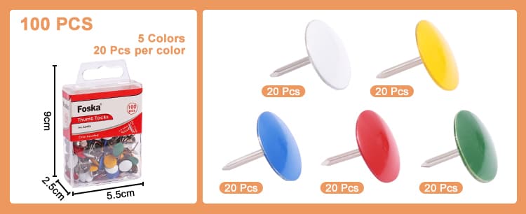 Foska High Quality Color Paninted Nickel Thumbtack-Crafted with a 1mm thickened steel tip, these thumbtacks provide exceptional durability and resistance against rust,