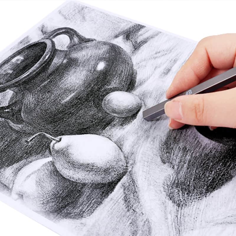Solid graphite sticks, fine texture, smooth painting, not easy to break, easy to apply on a large area. Clear colors and rich layers, use with blending tool to achieve amazing results.Plus, they fit hands well.