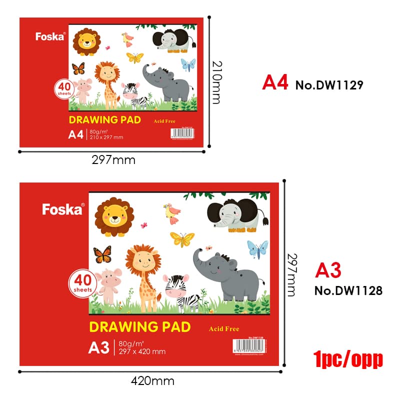 Foska A4 A3 Drawing Canvas Pad featuring eco-friendly paper material. It includes 40 sheets, ideal for drawing, painting, and sketching. The product meets EN71 certification standards, ensuring compliance with strict EU safety regulations, which adds value by guaranteeing market access.