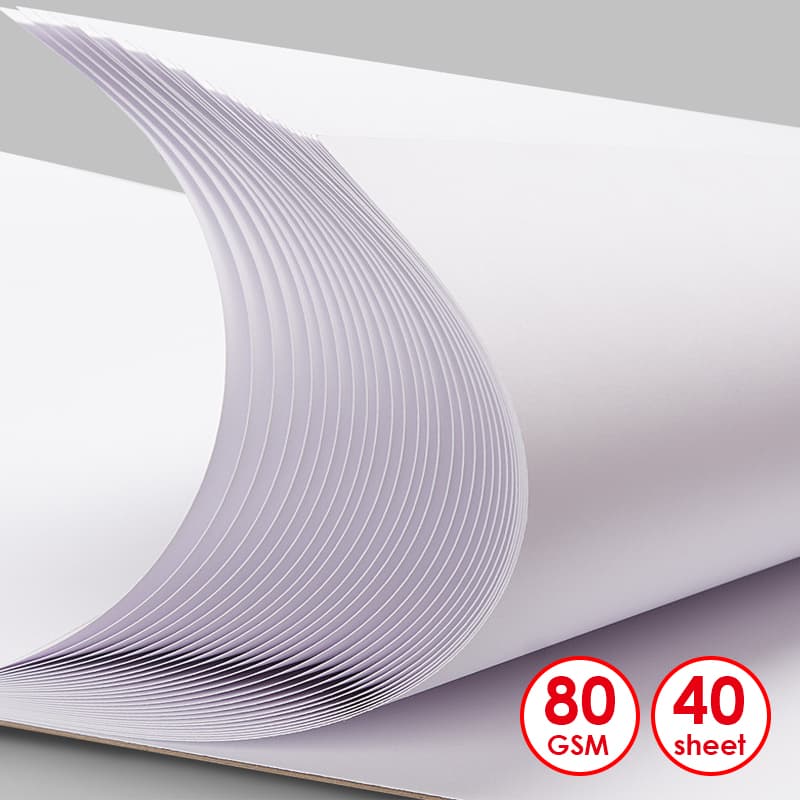40 sheets, size: A3/A4, weight: 80gsm, cover 150gsm coated paper, back cover 300gsmbrand :