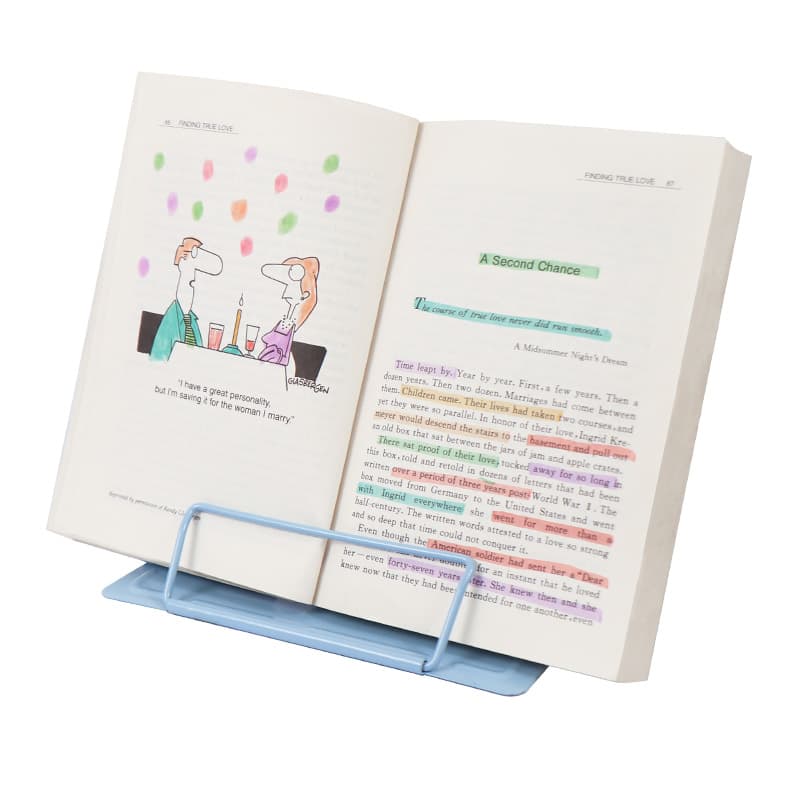 The book reading stand is made of high-grade stainless iron and steel with polished and baking painted surface, smooth, rustproof, durable and not easy to break. It has rounded corners and anti-slip pads.