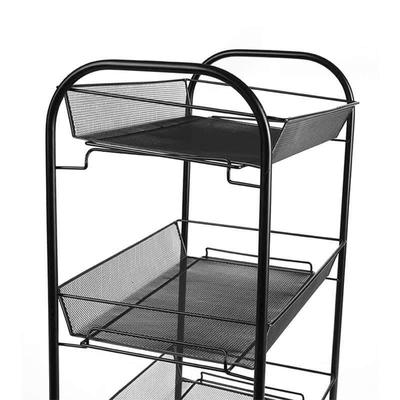 The trolley offers multiple trays or shelves for organizing various items, making it suitable for storing diverse goods or tools.