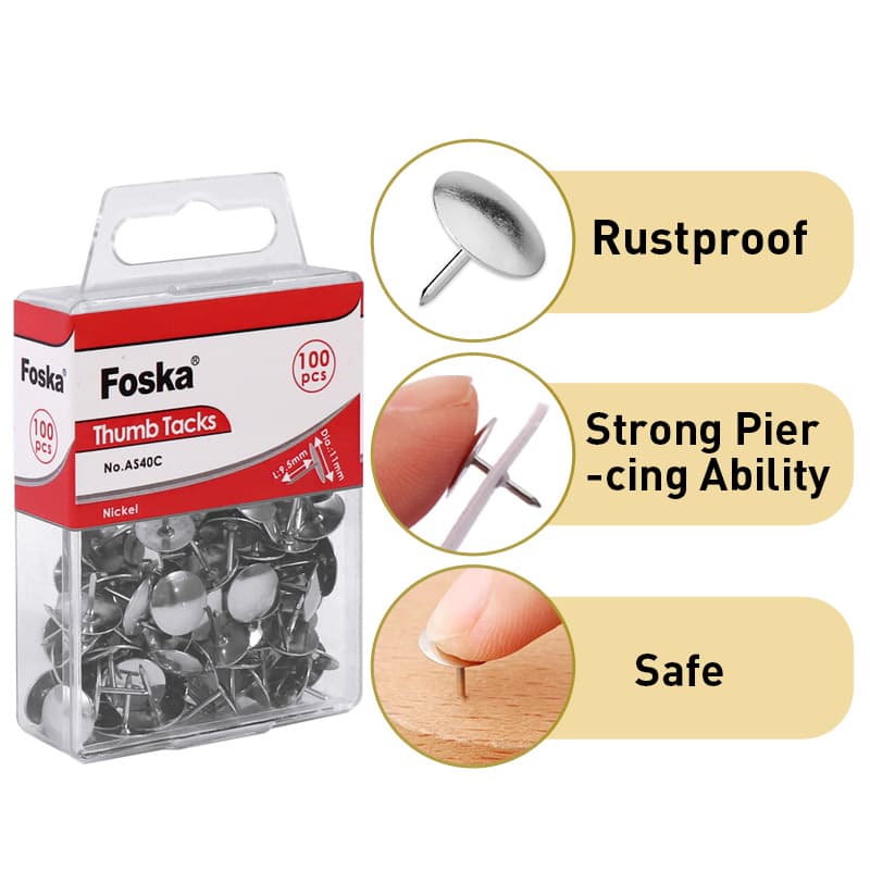 Our premium nickel-plated thumbtacks are crafted with sturdy steel and a smooth anti-rust nickel finish, delivering long-lasting durability and corrosion resistance for daily office use. Each tack features a sharp precision tip for easy insertion into cork boards, bulletin boards, wooden panels and cubicle walls, while the flat round head firmly secures documents, memos, photos, posters and maps without slipping or damaging papers.