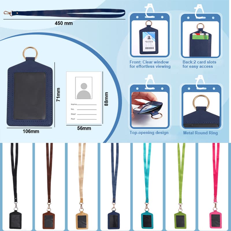 Crafted from premium PU leather, this badge holder offers a sleek, professional look while providing durable protection for your ID cards, access passes, and student IDs. The soft yet sturdy material resists scratches, water, and daily wear, ensuring your cards stay safe and secure. With a transparent, crystal-clear window, you can quickly scan or display your badge without removing it. The lightweight design and smooth finish make it comfortable to carry, whether clipped to a lanyard, belt loop, or backpack. Ideal for office workers, students, teachers, and event staff, this badge holder combines style, functionality, and long-lasting quality in one compact accessory.