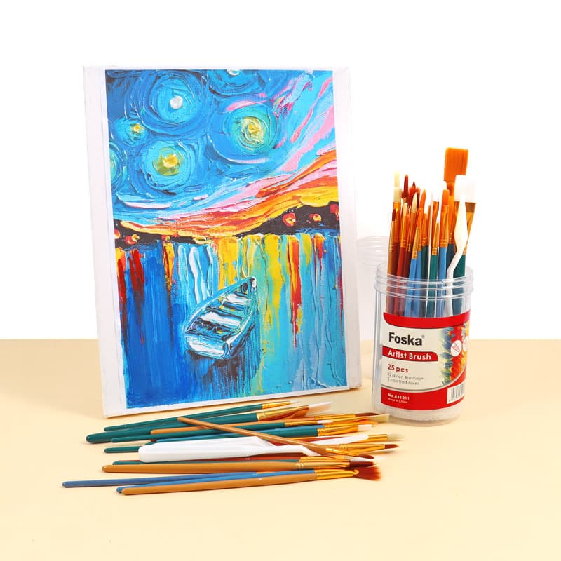 Works with watercolor, oil, gouache, ink, and acrylic paints, and can be used on canvas, wood, fabric, paper, rocks, shoes, face, and for DIY craft projects.