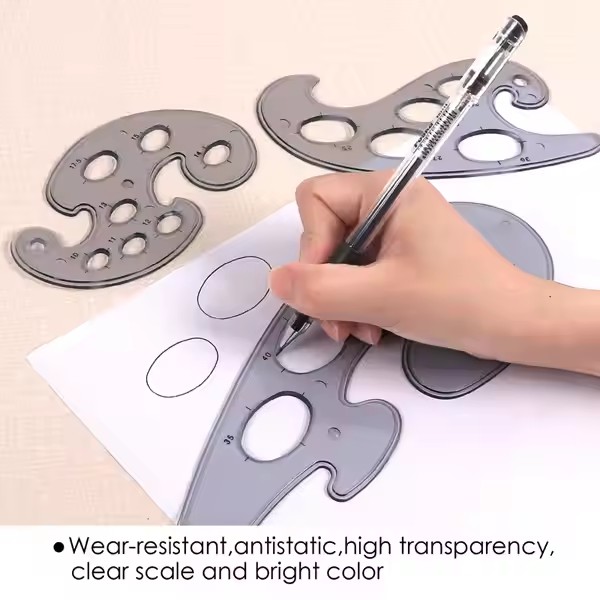 A French curve is a template used in manual drafting to draw smooth curves of almost any desired curvature. A French curve is a thin piece of plastic, shaped with many different complex curves on its edge. It's used as a drawing guide to create flowing, non-circular curves. They serve as excellent educational tools for teaching the principles of curve fitting and approximation in mathematics and engineering courses.