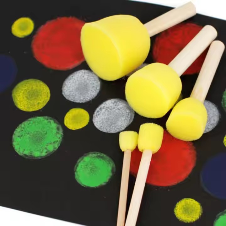 Foska good quality sponge painting brush for kids, round shape, there are 5 pcs in one set, wooden handle. Ideal for kids drawing.