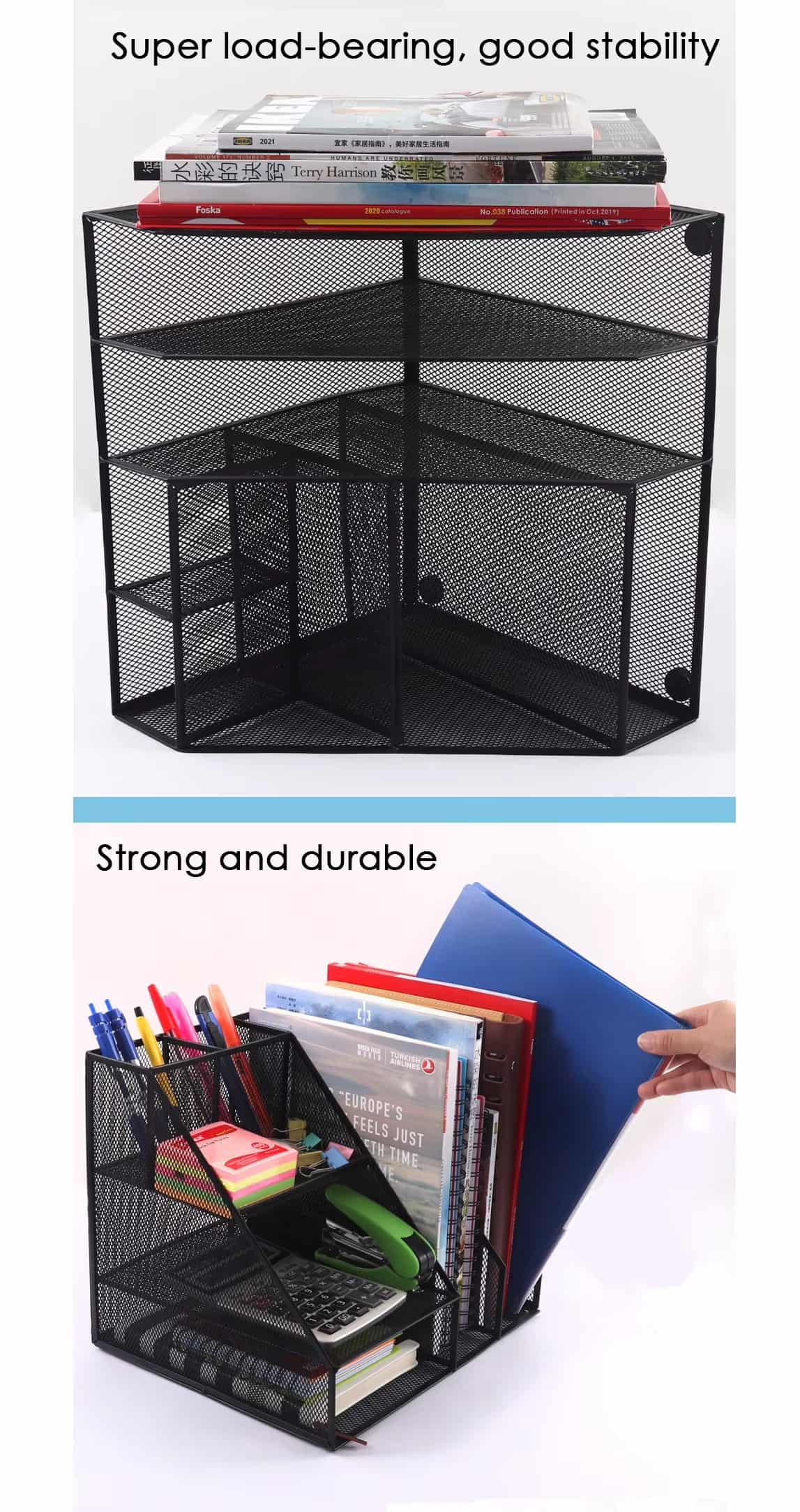 8 compartments design,saving space, this mesh desk organizer is easy to classify and organize your office desk supplies, and perfectly stores pens, pencils, markers, scissors, rulers, sticky notes, erasers, paper clips, cards, notes, etc.
