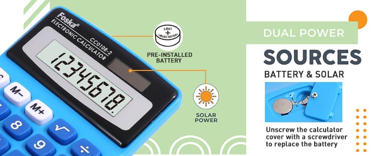 With the aid of its dual solar and battery power system, this calculator is fully powered in any lit environment. The battery comes included with the calculator, ensuring quick and easy access right away.
