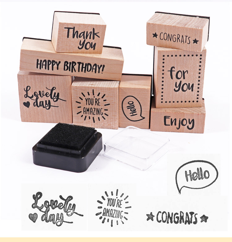 Mini Wooden Stamp Set, Vintage Stamp, Thank You Stamp, Wooden Round Wooden Stamp for Crafts, Motif Stamp, Small Stamp, Happy Birthday Congratulations Stamp Sayings for Scrapbooking