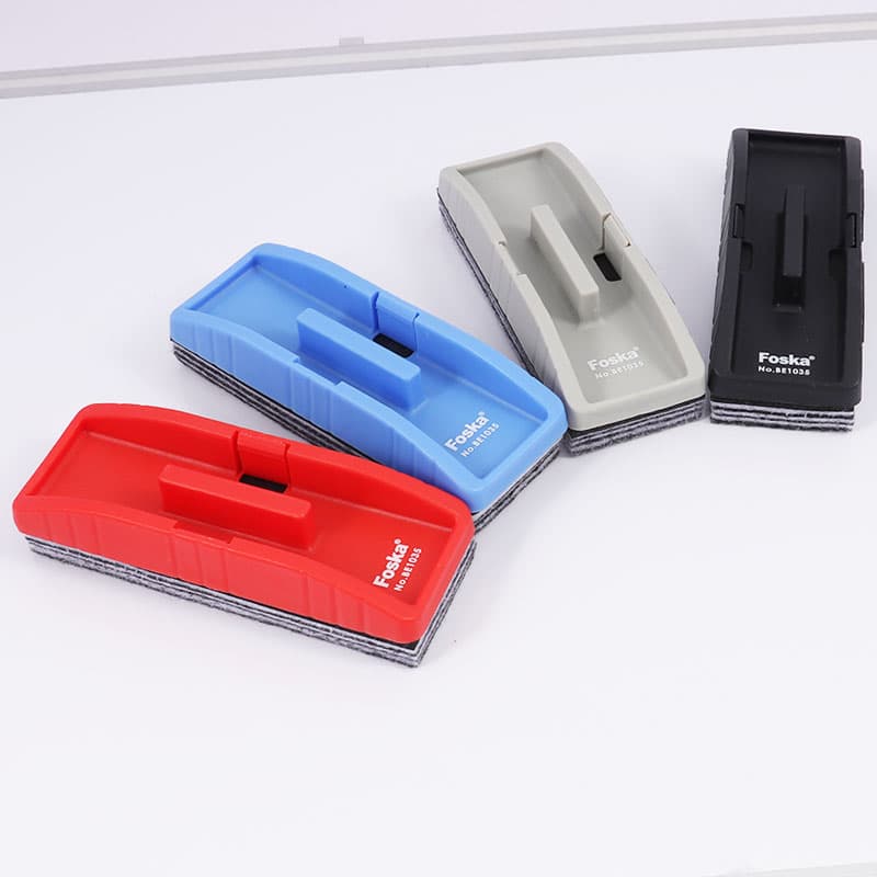 Foska good quality white board eraser with magnet, EVA+fiber material. 1 pc in one opp bag. Ideal for school and office use.