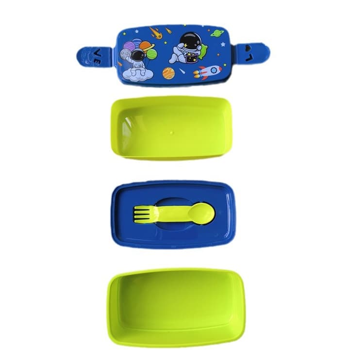 Foska Double Layered Bento Box Kettle Set- Crafted with a double-layer structure, this lunch box set boasts ample storage space, allowing you to pack a variety of delectable treats and nourishing meals for your child. Each compartment is thoughtfully compartmentalized, ensuring that different food items remain separate and fresh until lunchtime. The sealed design guarantees leak-proof transportation, eliminating the worry of any messy spills.