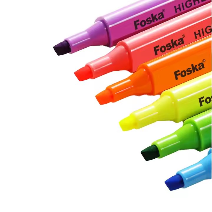 Foska good quality colorful highlighter, 6pcs in a PVC bag. Adopt high quality ink, non-toxic.