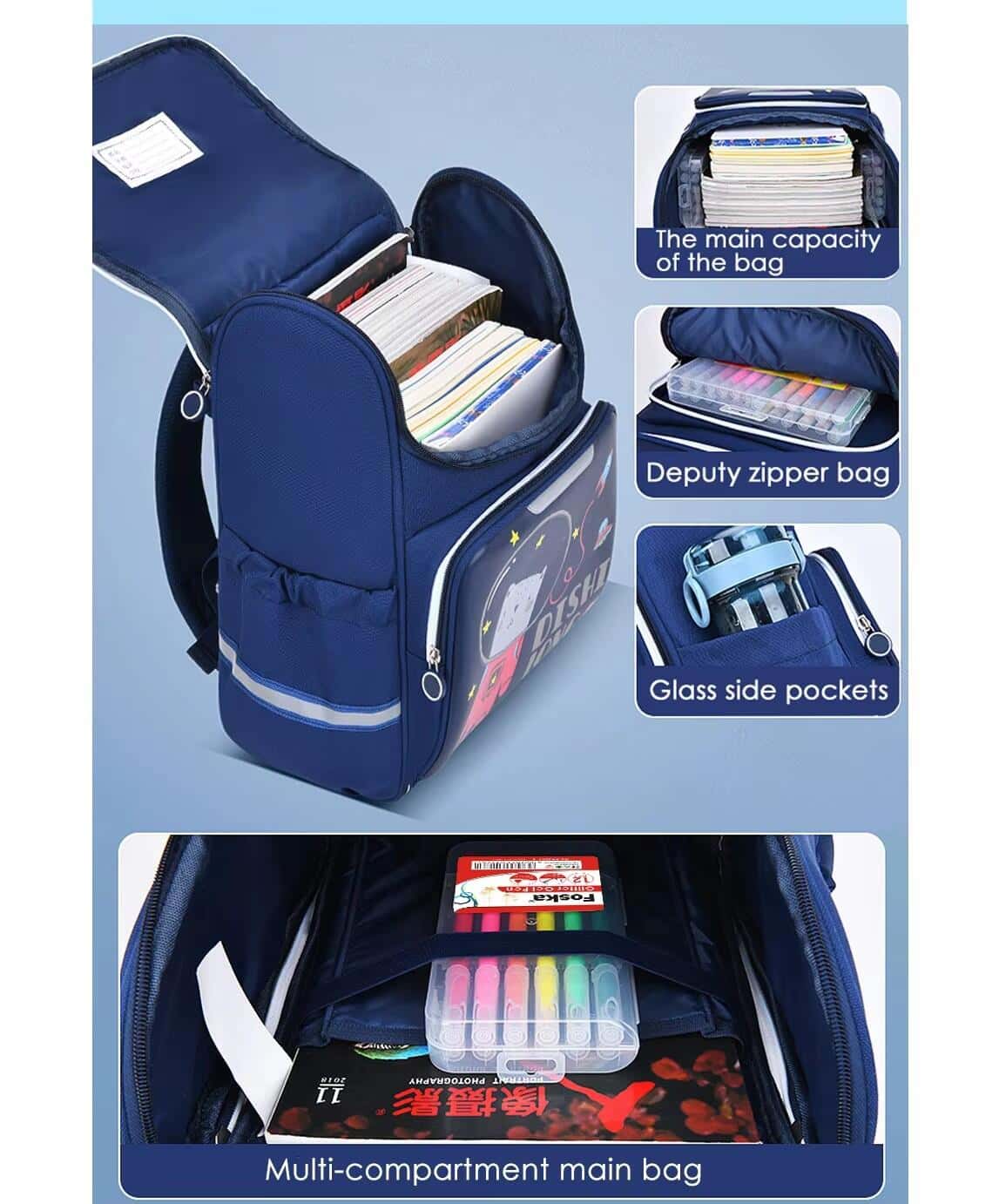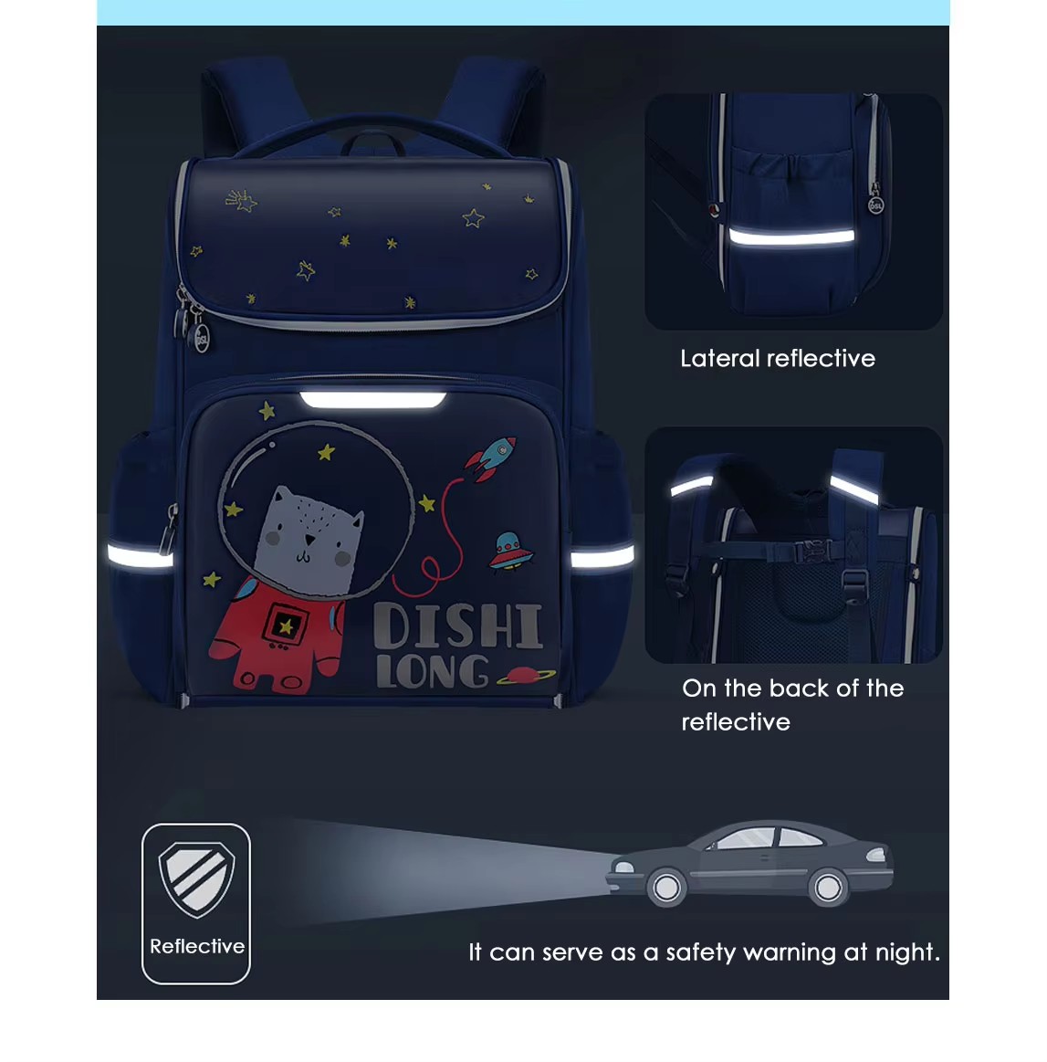 A school bag is a type of bag used by students to carry books, stationery, lunches, and other school-related items. It is often designed with multiple compartments and pockets to help organize and store belongings efficiently. School bags are typically made from durable materials 1200D twill to withstand daily use. They usually have padded shoulder straps for comfortable carrying and may also feature additional straps or handles for extra support. Some school bags come with reflective strips for added safety when walking or biking to school in low-light conditions. Many students personalize their school bags with stickers, patches, or charms to reflect their individual style and interests.