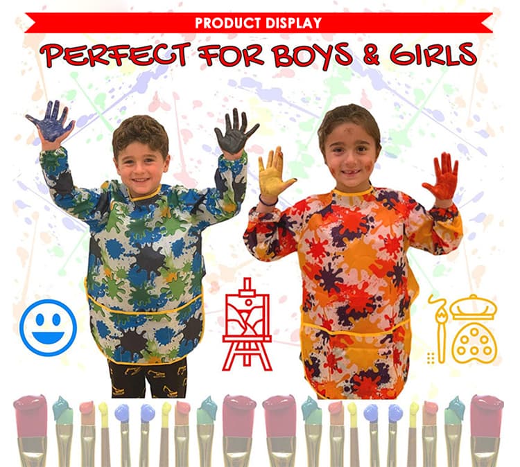 Foska Waterproof overclothes (for children)- Crafted with precision using high-quality waterproof polyester fibrem material, this apron guarantees optimal durability and longevity. Its waterproof feature ensures that your child's clothes remain protected from accidental spills and splashes, allowing them to unleash their creativity without any worries.